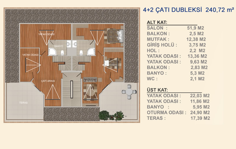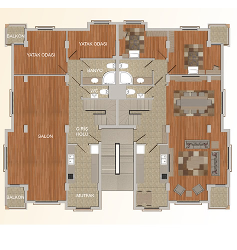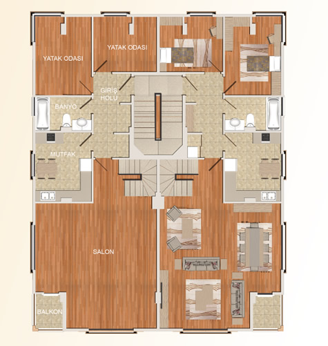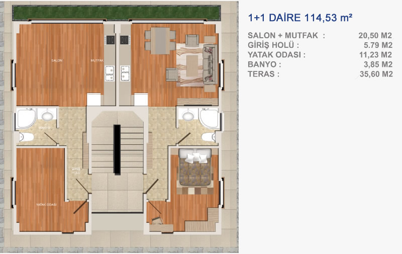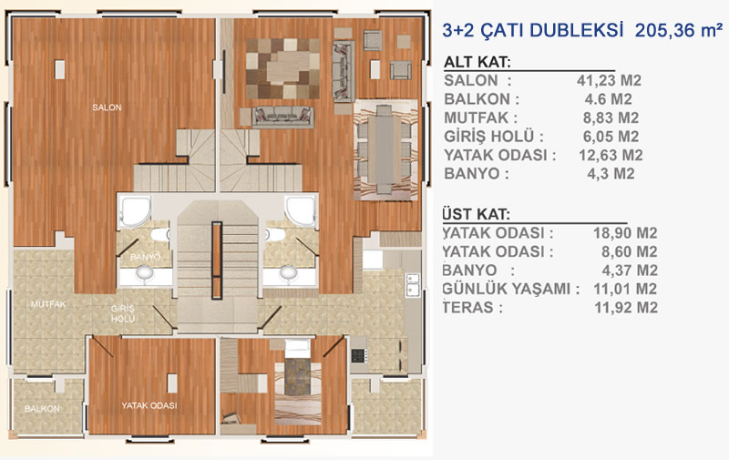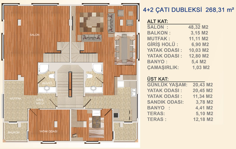 Konut Büyüklükleri : 65 – 268 m²